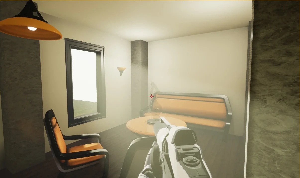 The next room is a smaller one, with two big windows and some furniture inside, similar to the previous room (the living room) I was mainly experimenting with light shafts to display cool bloom effects inside the room.